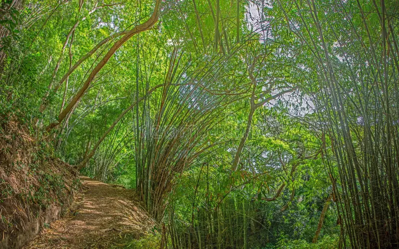 - Jungle trail with bamboo and greenery